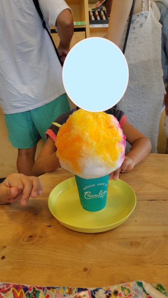 マンゴージュースとかき氷を買って食べましたが、家族四人でも食べきれませんでした。