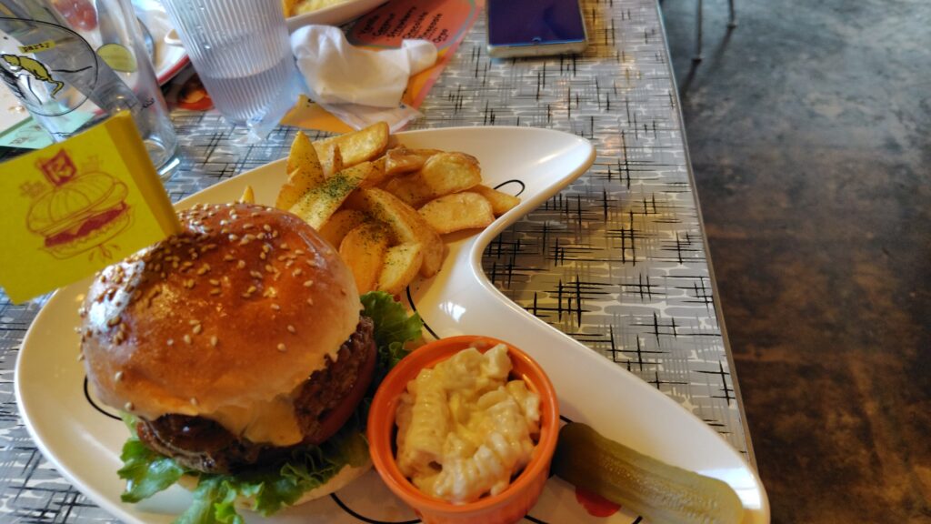長男はチキンスティックを食べ過ぎ、ハンバーガーが食べきれず。