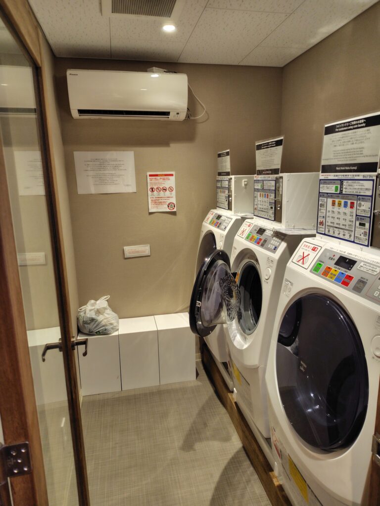 また、利用しませんでしたが、ホテルにはコインランドリーがあり、洗濯機が3つありました。